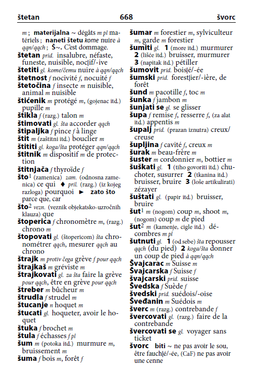 Potpuno novi džepni obostrani francuski rečnik u kome ćete naći fond reči koji se svakodnevno koristi. Cenićete ga ne samo na putovanjima i na poslu, već i tokom učenja jezika u školi ili na kursu. Pomoći će vam da se sporazumete i posavetujete u svakodnevnim situacijama, kao i da se tačnije izražavate i bolje komunicirate.